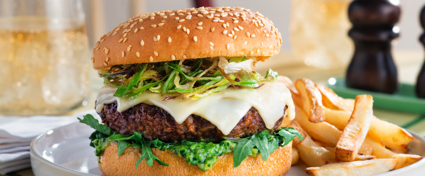 Spring Burger with Swiss Cheese and Leeks