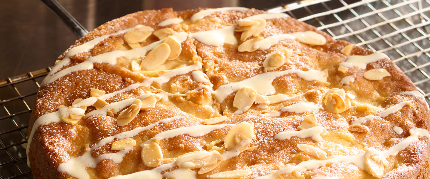 - Dust cake with icing sugar and toasted almonds.